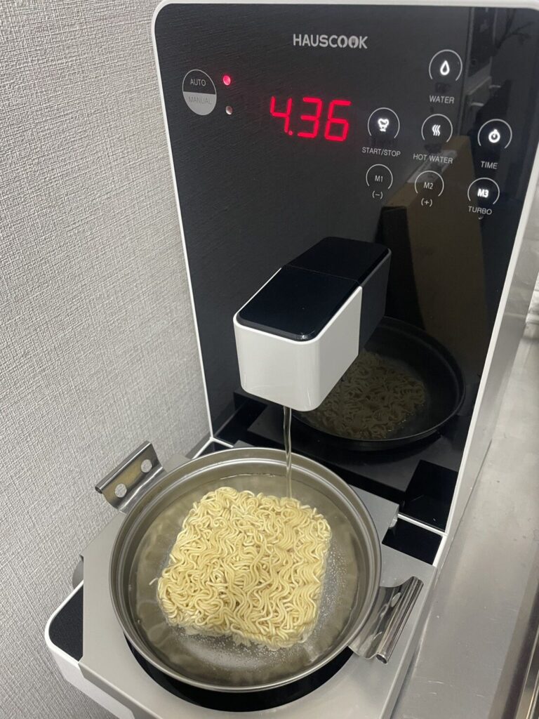 鍋に乾麺をいれてSTART/STOPボタンを押す。